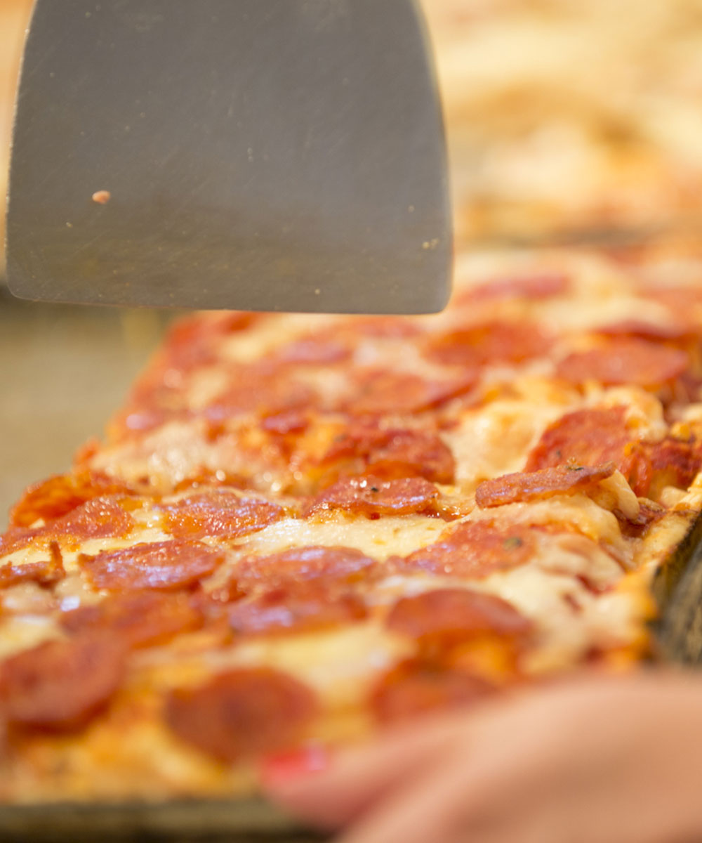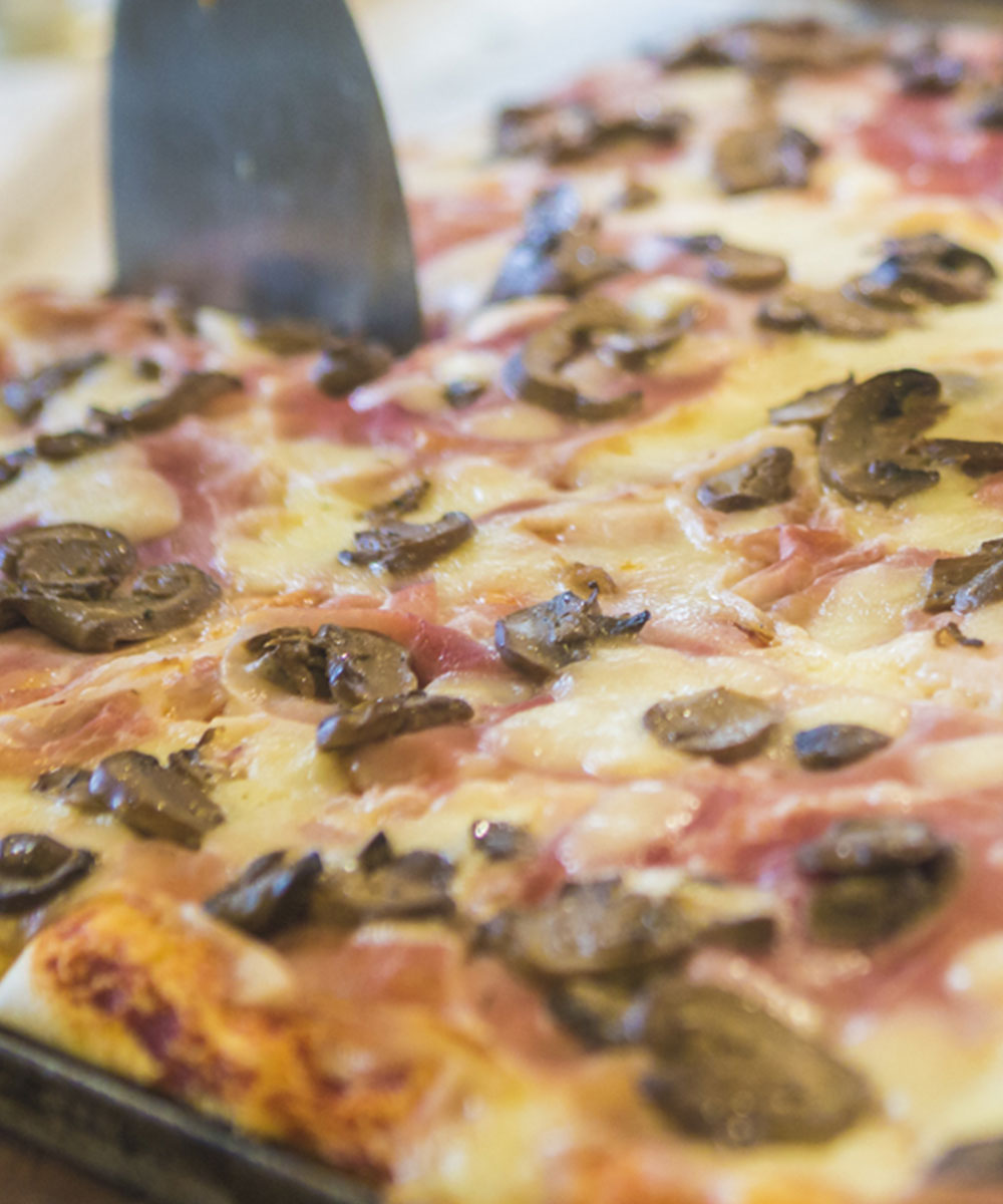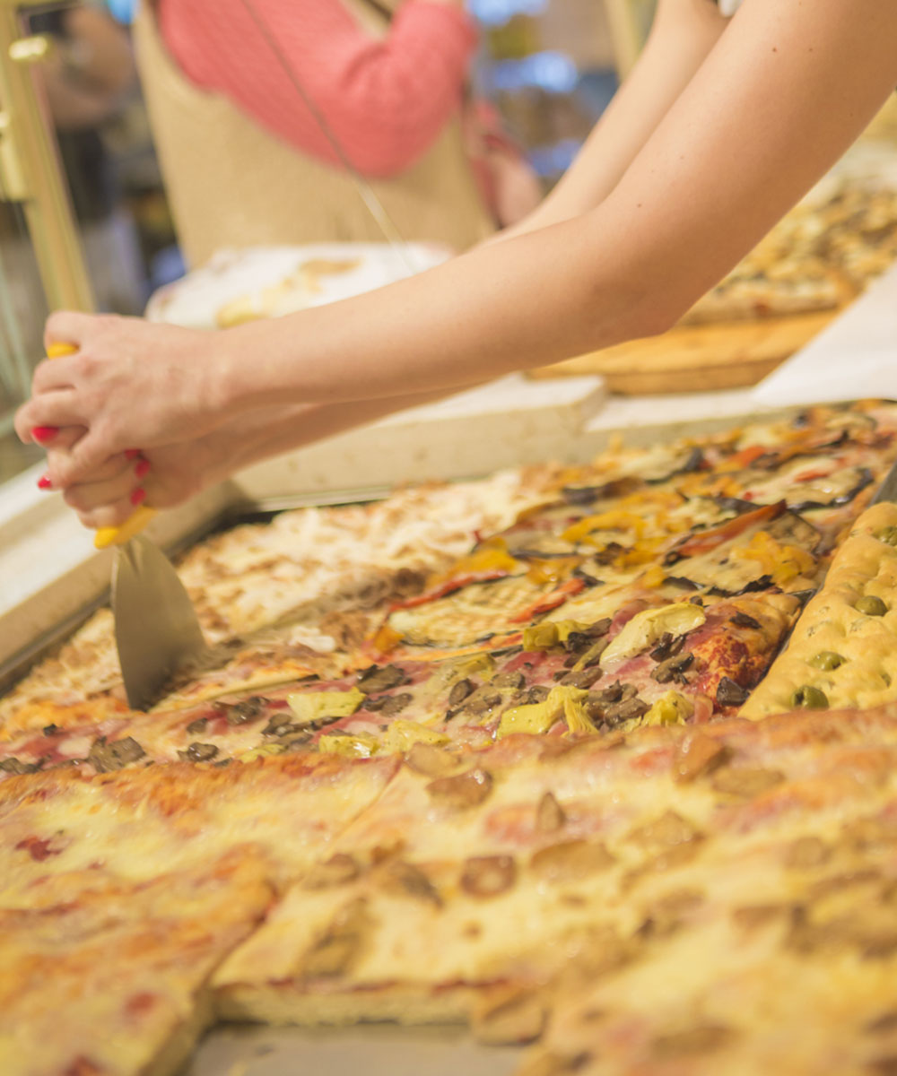Sforniamo ogni giorno pizze al trancio farcite con tutti i gusti, dalle tradizionali alle più particolari. E se passi a trovarci puoi anche prenotare la tua pizza preferita.